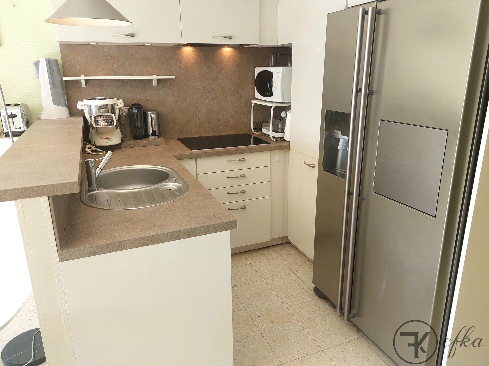 Ouverte sur balcon - Cuisine équipée - Vue mer